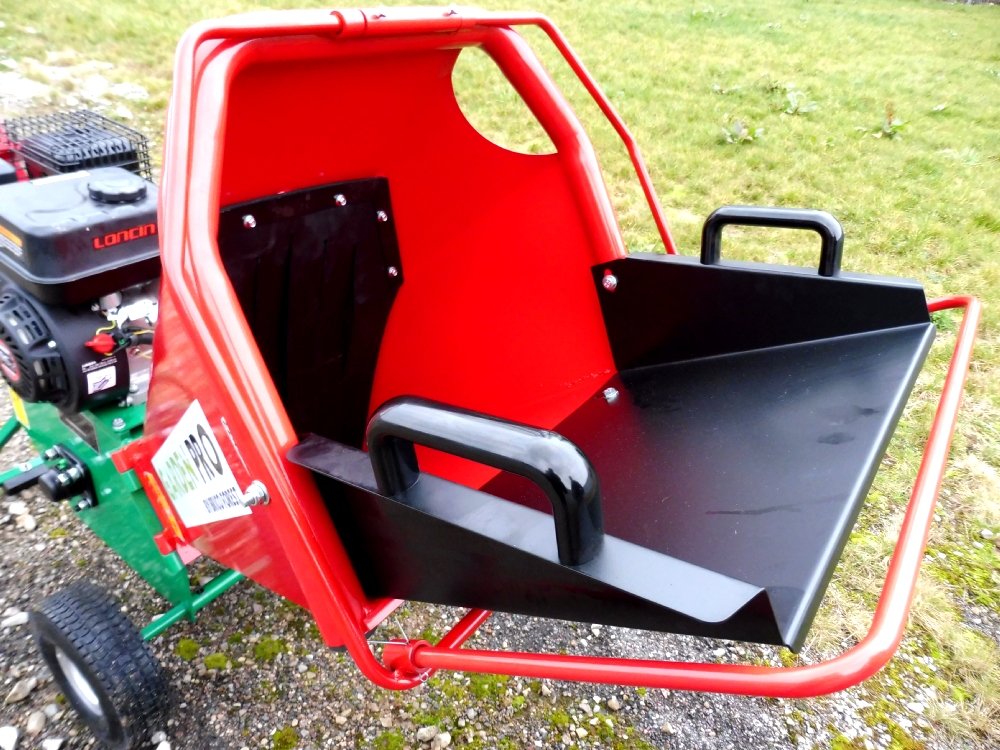 Broyeur de végétaux équipé d’une seule et unique trémie de grande capacité pouvant recevoir des branches sans au préalable effectuer de tri contrairement aux broyeurs à deux trémies.