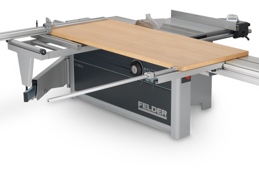 Vous utilisez la surface de contact de votre chariot à format et votre table coulissante en combinaison avec la butée parallèle et vous assurez ainsi le positionnement précis de la pièce à usiner. Le guide de coupe parallèle est accroché au chariot coulissant, l’échelle intégrée 25 – 1000 mm peut être lue précisément via la loupe.