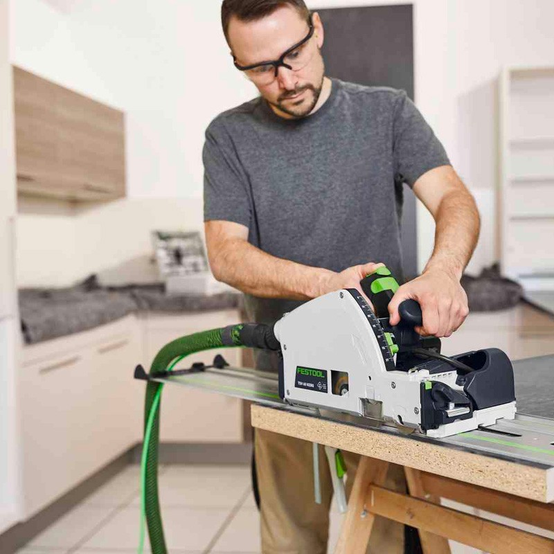 La scie plongeante avec inciseur TSV 60 KEB Q-Plus Festool permet des deux côtés un sciage sans éclats et maintenant dès la première coupe. La TSV 60 K procure sur le chantier la même qualité qu’à l’atelier. Pour des résultats à la hauteur de ceux d’une machine stationnaire